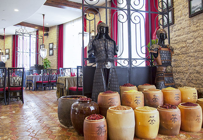 地道風味的泰式美食酸辣冬陰功湯,原汁菠蘿炒飯,濃郁咖喱蝦……一道道色香味俱全的泰式美味帶來濃濃的東南亞風情,“大兵船”餐廳以赫赫有名的大明水師戰艦為名,致力將異域美食、復古室內裝潢及迷人海景共冶一爐,打造炙手可熱的美味熱點,集中發掘東南亞海域的美食瑰寶,嚴選新鮮食材,來自泰國曼谷的主廚自創烹調手法,炮制出令人耳目一新的地道泰國美食,享受美味之余,還可欣賞泰國舞者帶來的萬般柔美的泰國舞,如此集味覺、視覺于一體的美食之旅,真可謂美不勝收。